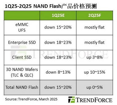 TrendForce集邦咨询: 减产奏效、买方回补库存,2Q25 NAND Flash价格逐步回升