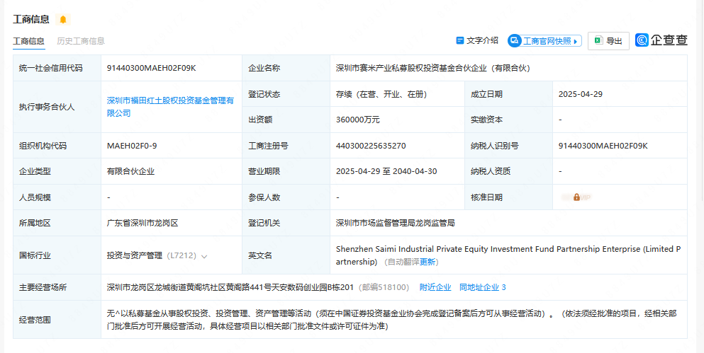 近日,深圳市半导体与集成电路产业投资基金“#赛米产业私募基金”正式设立,注册落地龙岗,首期注册资本36亿元。